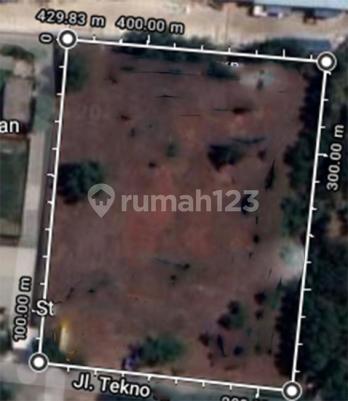 Dijual Kavling taman tekno Luas 10.877m2 Dimensi : Lebar depan 93,04 m Panjang kiri 115,35 m Panjang kanan 118,52m Lebar belakang 93,03 Bentuk kotak Hadap Selatan PPJB atas nama Pribadi Harga 15juta permeter Ir
