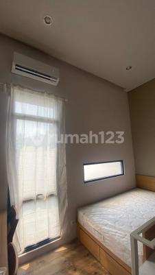 Sudah furnished:tempat tidur, Kitchen set, sofa, tangga yang berfungsi sbg lemari penyimpan barang2, msh ada taman, dibelakang msh ada udara.