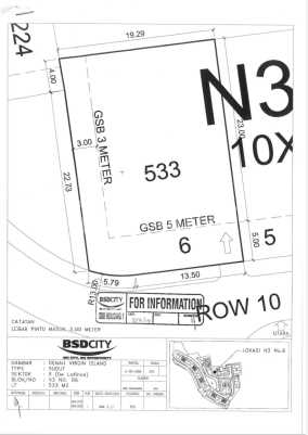 HOT PROPERTY FOR SALE Dijual kavling Virgin Island De Latinos BSD LT 533 m2 Hadap Selatan Barat dapat taman luas di samping, tinggi di atas bukit HARGA 10jt/m2 NEGO 0600