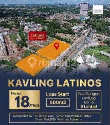. Tanah Komersil Latinos di Bsd City, Tangerang 800 m² Dekat Tol Dan Stasiun Kavling De Latinos Kavling De Latinos start di 800m² dengan Harga Rp. 20.000.000/m² (excl.PPN) Available di LOT - LOT 5 : 813m² - LOT 6 : 809m² - LOT 7 : 821m² - KDB : 50% - KLB : 4.5 - Tinggi Bangunan : Max 9 Lantai SERIOUSLY, INI KESEMPATAN LANGKA! Latinos BSD City tinggal sisa sedikit! Lokasi strategis deket AEON Mall BSD & Foresta Business Loft! Akses premium buat mobilitas tanpa ribet! Deket stasiun, tol, dan kawasan bisnis! Bisa dijadikan : - Kantor & bisnis consulting - Lokasi bonafit, image perusahaan makin profesional! - Restoran atau lounge premium - High-class market, profit lebih stabil! - Retail butik atau flagship store - Brand eksklusif makin bersinar di lokasi ini! - Creative space atau studio event - Cocok buat workshop, pameran, atau komunitas kreatif! R I A 0852xxxxxxxx
