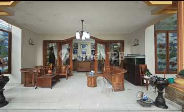 Hadap Timur Laut Halaman belakang masih luas ( Bisa dijadikan kolam renang) Kaca hias patri Jalan perumahan lebar Depan rumah taman cluster Semi Furnish - lemari tanam - Kitchen set - Pintu ukir jati - Gordyn - AC 3 unit