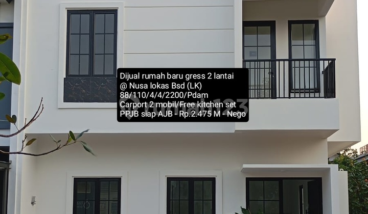- Bangunan baru gress, dibangun dari kavling BUKAN renovasi - Posisi HOOK - Taman cantik - Carport 2 mobil - Free from seller : ✅ Modern kitchen set (Baru) - Ready instalasi pipa AC + Water heater - Surat PPJB siap AJB - Harga Rp.2.475 Miyard - Nego