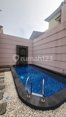 Rumah hoek, minimalis, bangunan mandiri, 2.5 lantai lokasi di cluster yang aman, nyaman. Tersedia kamar tidur 5+2, kamar mandi 3 swimming Pool, taman yang terawat, PLN 4.400watt, carport 4 mobil, garasi 1 mobil