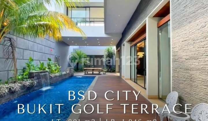 TURUN HARGA ! FOR SALE BSD CITY - BUKIT GOLF TERRACE LUXURIOUS MODERN TROPICAL HOUSE DESIGNED BY DENNY GONDOJATMIKO Dekat ke Damai Indah Golf, ITC BSD, BSD Plaza, AEON Mall, Tol JORR & Kunciran Luas Tanah 801 m2 Luas Bangunan 1.046 m2 Bangunan 3 lantai Kamar Tidur 5 Kamar Mandi 4 Kamar Pembantu 2 Kamar Mandi Pembantu 1 Sanitary Toto, Toto Import (khusus bathtub di kamar mandi master), American Standard, Roca & Paloma Ruang Serbaguna (lantai 3) Rooftop Luas Tangga Lantai Kayu Solid Jati Pintu Utama & Kamar Utama Kayu Solid Merbabu & Kamper Lantai Batu Andasit Swimming Pool (3 x 12 m) Kolam Koi (6 x 6 m) Gym Garasi 3 mobil Carport 3 mobil Bentuk Tanah ngantong (lebar ke belakang) Hadap Timur Laut Semi Furnished: Ruang Keluarga: Panel TV marmer italia dengan kabinet gantung Dapur Bersih: Lantai Kayu Jati Solid, Island Marmer, Finishing Lacquer, Kulkas LG 4 pintu, Built-in Microwave, Oven & Kompor Modena, Sink Blanco, Meja Marmer Italia 280 x 150 cm, Meja Konsol Marmer Italia 135 x 45 cm Dapur Basah: Kompor Standing Modena, Sink Teka Status PPJB Harga Rp 25 M -> Rp 23,5 M More Info Bulan 0812xxxxxxxx CODE : RT