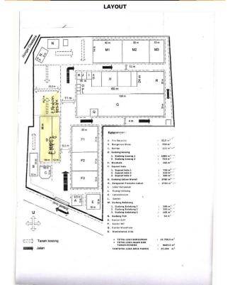 JUAL DIBAWAH HARGA NJOP / DISEWAKAN PABRIK DI CIKOKOL, MH. THAMRIN, TANGERANG Lokasi : Cikokol - MH Thamrin - Tangerang Spesifikasi : - Luas Tanah : 22.285 m² - Luas Bangunan : 12.261 m² - Sertifikat : Hak Guna Bangunan ( SHGB s/d 16 Februari 2035 ) - City Planning : Front : - KDB : 30 - KLB : 1.2 - KB :4 - KDH : 45 Rear : - KDB : 30 - KLB : 0.9 - KB : 3 - KDH : 45 - Status Clean & Clear - Akses Container 40 Feet - Ada Sungai - Zona Perindustrian, Pergudangan dan Campuran Add Info : - Lokasi sangat strategis di jalan Raya - Dikelilingi oleh beberapa area pabrik dan dekat dengan Pusat Bisnis Jakarta. - Dekat akses dengan pintu tol Tangerang, Jakarta, Merak, Bogor. - Satu akses keluar masuk pabrik - Terdapat mess karyawan dalam lingkungan pabrik - Harga NJOP : Rp. 8,9 Juta / m² . - HARGA JUAL : Rp. 8 Juta / m² - Nego Sampai Deal - Exc PPN . - Harga Sewa : Rp. 4 Milyar / Tahun - Exc PPN . Co.Her2.25 .