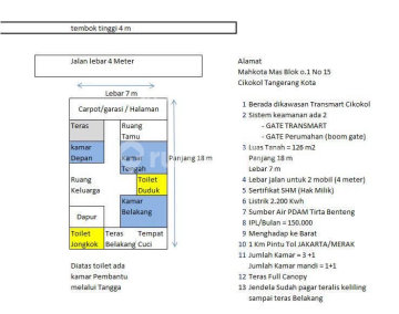 1.Berada di kawasan transmart cikokol 2.security 24 jam gate ada. -Gete Transmart -Gate perum 3.Lt 126 (18x7) 4.Lb 105 5.SHM 6.Lebar jalan 4meter 7.Listrik 2.200kwh 8.Air PDAM Tirta Benteng 9.IPL/Bulan 150ribu 10.Menghadap ke barat 11.Teras full Canopy 12.Rumah sudah di pagar tralis sampai belakang Contact: Chris DFS #236927