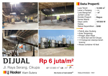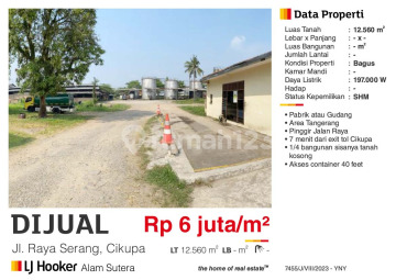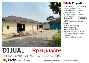 Dijual Gudang pabrik Bagus 12560 m2 jl raya serang Cikupa sertifikat SHM