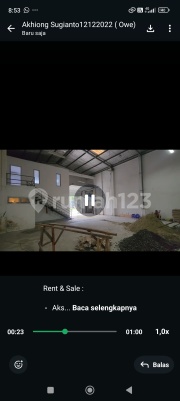 Rent & Sale : - Akses Kontainer 40 Feet Gudang Di Kawasan Pergudangan Bizlink, Cikupa, Tangerang *2 Unit Gudang (Sudah Gandeng)* Luas Tanah : 830 m Luas Bangunan : 596 m - Office 2lt (4x5m) - mess - toilet Legalitas : SHGB ( 2 Buku ) Hadap : Utara 5,7 Km Ke Tol Balaraja Timur Harga Sewa : 400 JUTA / TAHUN [ MINIMAL SEWA 2 TAHUN ] Harga Jual : 7,3 Milyar hubungi 0819xxxxxxxx akhiong Sugianto