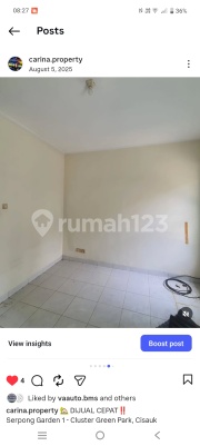 DIJUAL CEPAT‼️ Serpong Garden 1 - Cluster Green Park, Cisauk 1 lantai KT 2 + KM 1 SHM LT 72 m² LB 45 m² Harga 750 JT Nego Akan terima rumah dalam keadaan bersih ya. Arin gp gs 0878xxxxxxxx