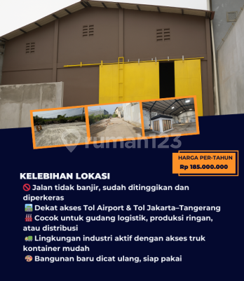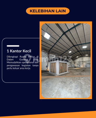 Disewakan Gudang Strategis Pantai Indah Dadap, Tangerang Spesifikasi Lokasi : Pantai Indah Dadap Luas Tanah : 600m2 Luas Bangunan 480m2 Daya Listrik : 2.200 watt 1 Lantai + Ruang Office Pintu Besar & Area Parkir Luas Tersedia Air & Fasilitas Lengkap Harga : 185.000.xxx/Tahun