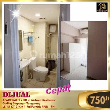 DIJUAL APARTEMEN 2 BR di M-Town Residence Gading Serpong - Tangerang Lokasi Strategis ditengah pusat area Gading Serpong, dekat sekolah Pahoa , RS. St.carolus, Supermarket Hypermart, Mall Summarecon dll. Luas 45 m² View City Lantai 16 Kamar Tidur 2 Kamar Mandi 1 Full Furnished Sertifikat : PPJB siap AJB Harga 750 juta - FN