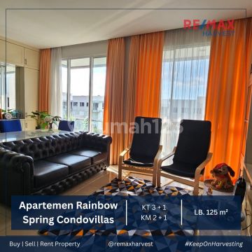 DIJUAL CEPAT !! APARTEMEN RAINBOW SPRING CONDOVILLAS Gading Serpong LB : 125.57 M² Lantai Sedang PPJB KT : 3 + 1 KM : 2 + 1 Ada 2 Balkon View Garden Semi Furnished Listrik 4400 Watt Parkir Mobil 1 Lot + 1 Motor Direct Owner (KN) Fasilitas : - Thematic swimming pool untuk balita & dewasa - Jogging track - Children Play Ground - Taman & Danau - Parkir luar utk tamu Harga Jual : 2.3 Miliar