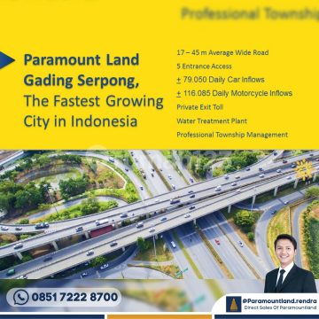 KAVLING KOMERSIL GADING SERPONG BSD 1.Dijalan Boulevard Utama Gading Serpong BSD Samping Pasadena Lot 79 dan Lot 83 Harga Rp. 27jt/meter Incl PPN 11% Cara Bayar : Tunai Keras 30hr - UTJ 500jt - H-15 setelah UTJ DP 30% - H-30 dari UTJ Pelunasan Di ajukan dengan Proposal 2. Dekat Pombensin BP Lot 2B Harga Rp. 27jt/meter Incl PPN 11% Cara Bayar : DP30% 1x, 70% cicil 6x - UTJ 500jt - H-15 setelah UTJ DP 30% - H-30 dari UTJ Angsuran DP 1 - H-30 dari Angsuran Sebelumnya DP2-6 Tanpa Proposal Lot 18, Lot 19, Lot 20 dan Lot 21 Harga Rp. 20jt/meter Incl PPN 11% Cara Bayar : Tunai Keras 1 Bulan - UTJ 500jt - H-15 setelah UTJ DP 30% - H-30 dari UTJ Pelunasan Tanpa Proposal 3. HAMPTON Samping Jalan Boulevard Gading Serpong LT 3.023m, 2.100m, 2.100m Harga Rp. 27,8/meter Incl PPN 11% Cara Bayar : Tunai Keras 1 Bulan - UTJ 500jt - H-15 setelah UTJ DP 30% - H-30 dari UTJ Pelunasan Diajukan dengan Proposal Untuk informasi lebih lanjut dapat menghubungi: Rendra - Direct Sales In House Paramountland 0851 722