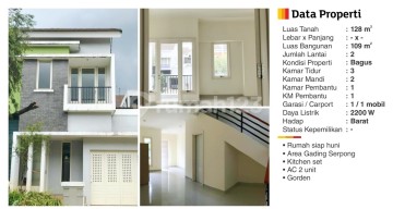 DISEWAKAN RUMAH Kawasan Gading Serpong Cluster Turquiose - PHG LT 126 (7x18) m2 dan LB 109 2 lantai KT 3+1 dan KM 2+1 Semi furnished: AC 2, curtains Listrik 2.200 Hadap barat daya Harga Rp.70 jt/ thn. Minimal utk 2 th.