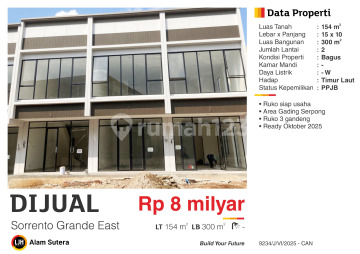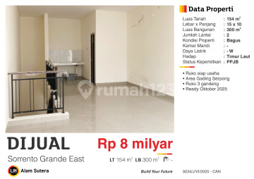Ruko di Gading Serpong. Dapatkan ruko yang modern ini, dijual menawarkan lingkungan fasilitas yang lengkap, cocok untuk Anda yang menginginkan hunian nyaman. Spesifikasi Utama Properti: - Kamar Mandi: 3 - Sertifikat: PPJB - Daya Listrik: 2200 W - Kondisi Perabotan: Unfurnished Fitur unggulan: - Dekat Pusat Perbelanjaan. - Dekat Sekolah Internasional. - Dekat Universitas. - Dekat Fasilitas Kesehatan. - Dekat Tempat Ibadah. - Bebas Banjir. - Siap Huni. - Lokasi di Pusat Kota. - Dekat Kawasan Bisnis & Industri. - Adem & Sejuk. - Lingkungan Tenang dan Damai. - Pemandangan City View. - Cocok Untuk Investasi. - Cocok Untuk Dijual Kembali. - Properti Bisa Nego. - Properti Eksklusif. Berlokasi di Gading Serpong, ruko ini memberikan kemudahan akses ke berbagai fasilitas menarik. Dengan harga Rp. 8.000.000.xxx, anda bisa memiliki hunian premium yang sudah siap huni dan bersertifikat PPJB. Manfaatkan kesempatan untuk menikmati pengalaman tinggal di kawasan Gading Serpong yang nyaman ini! Hubungi segera untuk informasi lebih lanjut!