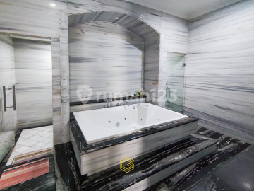Crown Summarecon Serpong LT 504 m2 (18x28) LB ± 1000 m2 3 lantai + basement KT 4+2 KM 5+2 1 ruang karoke Garasi 2 mobil + Carport 2 mobil - ada Lift - semi furnished - Ada pool - Ada basement rg entertainment - Ada aquarium besar - Material lantai marmer kelas premium - Saniter KOHLER. Ada bathtub whirlpool SHM Jual 20 M nego