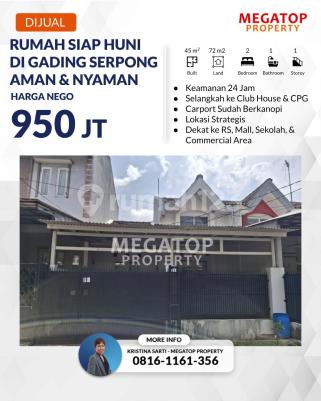 Rumah Dijual di Gading Serpong Sektor 7C, Siap Huni LT : 72m² LB : 45m² 1 Lantai 2 Kamar Tidur 1 Kamar Mandi 1 Carpark Lot AC 1 SHM Dekat ke Toll Jkt-Merak Dekat ke Summarecon Mall Serpong, Scientia Garden, Univ. Multimedia Nusantara, dll Dekat ke Commercial Area, dan Perkantoran Hubungi Maily, Megatop Property untuk informasi lebih lanjut. (KS)