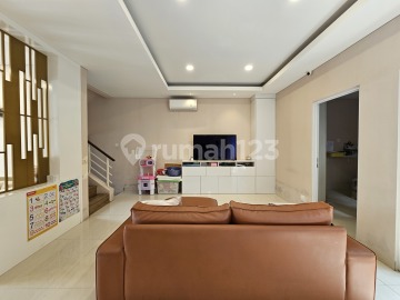 LT. 144m2 (9×16) LB. 195m2 (Bangunan Full Renov) KT: 3+1 KM: 3+1 SHM Hadap Timur Tenggara Furnish: AC 5 unit, water heater 2 unit, Kitchen set, lemari KT utama, meja rias set kmr utama, lemari tas, lemari KT anak + meja komputer, gorden, credenza tv, lemari sepatu (Win)