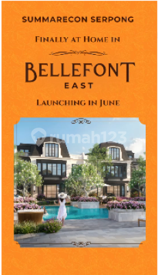 Bellefont East Summarecon Serpong, hunian premium persis di sebelah Club House The Springs hanya 5 menit ke AEON BSD dan Summarecon Mall Serpong Teredia Type : 8x16 m2 10x16 m2 12x16 m2 Harga mulai 4,2 Milyar Bellefont East Summarecon Serpong memberikan Anda kenyamanan yang tiada tara melalui fasilitas lengkap yang dihadirkan, antara lain: sistem keamanan 24 jam; CCTV; one gate system; taman asri; Clubhouse; taman bermain anak; lingkungan eksklusif; ROW jalan lebar dan rapi; dan lokasi bebas banjir. Yuk daftar NUP SEKARANG!