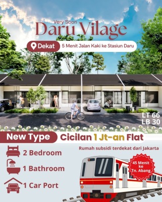 Perumahan Murah Exclusive Daru Village Hanya 1 menit ke Stasiun Daru cicilan Hanya 1 JTan flatt sampe lunas Dan Dekat tol legok Lt : 60 LB : 30 Harga 195 juta Daru Village! Lokasi: Daru, Tangerang Hunian strategis dekat ke Jakarta dengan harga ramah ekonomis! Keunggulan: - Cicilan mulai 1 Jutaan/Bulan - Posisi rumah strategis di dalam Cluster - Kawasan sekitar ramai, ada Mini Market & ATM - Deket banget ke Stasiun Daru (jalan kaki ±1 menit) - Ke Tanah Abang cuma ±40 menit via Commuter Line! - Rumah dekat Jakarta & akses transportasi gampang banget - Unit Terbatas - Segera Hadir! Hubungi kami sekarang untuk early info & jadwal survei very soon! More info : Shafa WA : 08514244xxxx