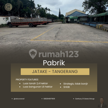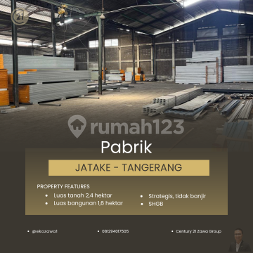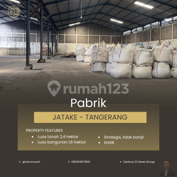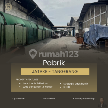 DIJUAL PABRIK DI JATAKE TANGERANG Lokasi : Jatake - Tangerang Spec : * Luas Tanah +/- 24.000 m² * Luas Bangunan +/- 16.000 m² * SHGB * Ada 6 Gudang * Tinggi Ceiling 9 * Jalan Utama & STRATEGIS * TIDAK BANJIR * Container 40 Feet * Perlu Renov * Perlu 3-5 Bulan untuk Pengosongan * ONLY BUYER HARGA JUAL 92,5 MILIAR - EXC PPN - NEGOTIABLE Terima Titip dan Jual Beli Property Seluruh Indonesia KHUSUS PEMBELI SERIUS silakan hubungi: @ekozawa108129xxxxxxx Century21 Zawa PIK #gudangforsale #pabrikforsale #gudangpabrikforsale #gudangdijual #pabrikdijual #tanahforsale #tanahdijual