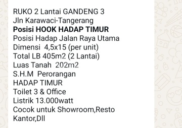 Disewakan Ruko Gandeng 3 Bangunan 2 lantai Di jalan Karawaci, Tangerang Luas Tanah 202 m2 Total Luas Bangunan 405 m2 Dimensi 4,5 x 15 ( per unit ) Tersedia Office Ada 3 Toilet Listrik 13.000 watt Sertifikat Hak Milik a/n Perorangan Hadap Timur Cocok Utk Showroom, Resto,Kantor dll Harga sewa seb 400 juta/tahun nego Utk info lebih lanjut,bpk/ibu harap menghubungi Sandy hp no.0816169xxxx Kode listing sandy-edhy
