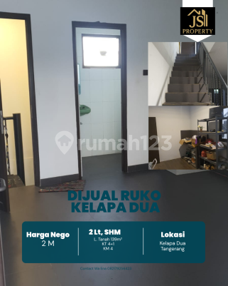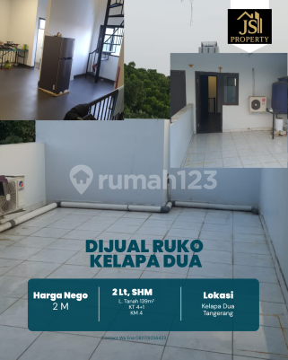 DIJUAL RUKO 2 Lantai di Kelapa Dua Tangerang - Banten Luas Tanah 139 m² Dimensi 6x23 m²± Luas Bangunan 260 m² 2 Lantai Kamar Tidur 4 + 1 ART Kamar Mandi 4 Full Furnish : Tidak Listrik 3300 x 2 Watt Air PDAM Sertifikat SHM Hadap Selatan Hal yang Menarik : Dekat Uph, Dekat RS Siloam Harga 2 M Nego