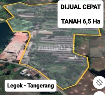 TANAH KOSONG _ MURAH Legok - Tangerang Luas 6,5 Ha (Lebar Depan 150M) - Sudah Berpagar Keliling - pinggir Jalan + aspal beton - 700 M SPBU - Radius 1Km Cluster Perumahan/ Gudang/ pemukiman - akses truck 40 Ft - 3 Km _ RS. Siloam - 4 Km _ Mall Lippo Karawaci - 3 Km _ Pasar Curug/ Korelet - Tanah Padat Datar + Bebas Banjir 1,5Jt/meter...Nego sampai deal Sertipikat SHM 3 surat Info lebih lanjut hub : Alexander NG 08571631xxxx