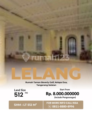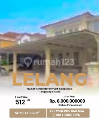 LELANG 07 April 2026 Rumah, Taman Beverly Golf, Jl. Danau Semayang, Ds/Kel. Bencongan Indah, Kec. Kelapa Dua, Kab.Tangerang, Prov.Banten SHM Luas Tanah : 512 m² Harga Rp. 8.000.000.xxx Include Pengosongan. Mau tanya detail tentang lelang properti ini? Hubungi : Issa 0811xxxxxxxx Atau Klik Link di Bio.