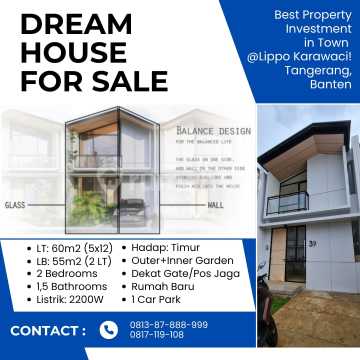 Dijual Lippo Homes @Lippo Karawaci, Cendana Parc, Kadu, Curug, Tangerang Regency, Banten * Luas Tanah : *60m2 (5x12)* * Luas Bangunan : *55m2 (2 LT)* * Jumlah Kamar Tidur : *2 Bedroom* * Jumlah Kamar Mandi : *2 Bathroom* * Jumlah Lantai : *2 Lantai* * Jumlah Garasi/carport : *1 atau 2 Carport* * Jenis Sertifikat : PPJB * Harga : *950jt (Nego)* * Keunggulan/Selling point: 1. Hadap Timur, Matahari Pagi 2. Dekat Security Gate Utama & Samping 3. Rumah Baru, Belum Pernah Huni 4. Dekat Dengan Fasilitas Umum 5. Pemukiman Sudah Ramai & Hidup/Aktif 6. Ada Outer & Inner Garden Hub Yanny Gading Pro 081670xxxx