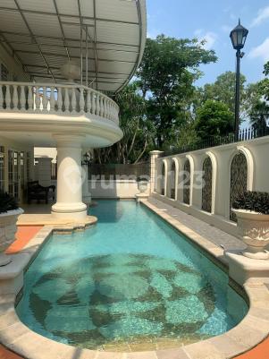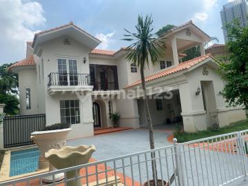 Luas tanah: 540m2 Luas bangunan : 385m2 Kolam renang Kamar tidur 5 Kamar mandi 4 Toilet tamu 1 Ruang tamu Ruang makan Kamar pembantu 2 Dapur kering Dapur basah Garasi dlm 2 mobil Harga Rp.260jt nett/ tahun Semi furnished Rumah bersih terawat .