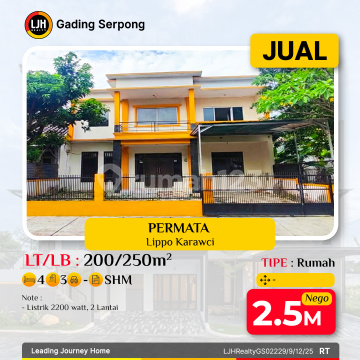 DIJUAL - Rumah Permata Lippo Karawaci Spesifikasi: - Luas Tanah: 200 m² - Luas Bangunan: 250 m² - 2 Lantai - 4 Kamar Tidur - 3 Kamar Mandi - Listrik 2.200 watt - Sertifikat SHM Rumah cocok untuk keluarga besar, lingkungan tenang & lokasi premium dekat fasilitas lengkap Lippo Karawaci