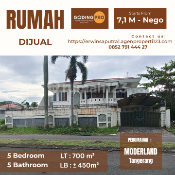 Dijual Murah Harga Tanah !!! Lokasi strategis, terletak di jalan boulevard, akses jalan lebar, bebas banjir, keamanan 24 jam, club house, kolam renang - Rumah perlu renovasi - Luas Tanah : 700 m² - Luas Bangunan : ± 450m² - 2 SHM - Hadap Timur HARGA : IDR 7.1 M - Nego Dan Pengajuan list by : aydabca