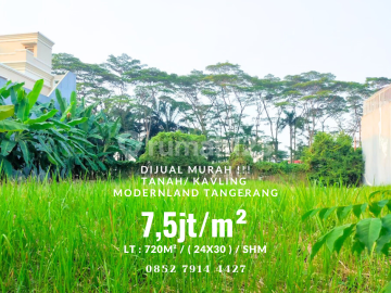 Jual Murah Tanah kavling siap bangun di modernland kota tangerang - Sertifikat: SHM - Hadap Barat daya - Luas tanah : 720m² ( 24X30 ) - Dekat Akses KRL. - Dekat Akses Bus Kota. - Dekat Tempat Ibadah. - Dekat Fasilitas Kesehatan. - Dekat Universitas. - Dekat Sekolah Negeri. - Dekat Sekolah Internasional. - Dekat Pusat Perbelanjaan. - Dekat Akses Bandara. - Lokasi dipusat kota. - Dekat Pusat Bisnis. Hanya Rp. 8 jt/m² ( Net ) List By : ~. onr.eva.erw