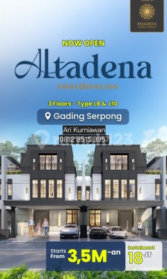 Paramount Land mempersembahkan Cluster Terbaru di Lokasi Paling Strategis di Gading Serpong. Altadena Residence adalah Cluster premium 3 lantai dengan lebar 8 & 10 dengan konsep European Classic Design. Lokasi Cluster Altadena Residence sangat strategis yaitu di Boulevard Utama Gading Serpong. Berhadapan langsung dengan lahan 10.000 m² yang dibangun Hypermarket dan Electronic mega store. Dibangun diatas lahan seluas 2 Hektar dan hanya ada 84 unit saja. Tahap 1 dibuka 42 unit dan Serah terima unit 22 bulan. DEKAT DENGAN : 5 Menit ke Mal East Vara 10 Menit ke QBig BSD City 14 Menit ke Aeon Mall BSD 15 Menit ke Pintu Tol Aeon 18 Menit ke Gerbang Tol Jakarta – Merak FITUR YANG TERPASANG : Canopy EV Ready Installation Smart Door Lock AC disetiap kamar Electric Walter Heater di Kamar Mandi Utama BONUS KONSUMEN : Free IPKL 6 Bulan PILIHAN UNIT & HARGA : TYPE 10x16 STANDARD Luas Tanah : 160 m2 Luas Bangunan : 240 m2 Kamar Tidur : 4+1 Kamar Mandi : 5+1 Lantai : 3 Harga : Rp. 4,634 M TYPE 10x16 CORNER Luas Tanah : 190 m2 Luas Bangunan : 240 m2 Kamar Tidur : 4+1 Kamar Mandi : 5+1 Lantai : 3 Harga : Rp. 5,138 M TYPE 8x16 STANDARD Luas Tanah : 128 m2 Luas Bangunan : 181 m2 Kamar Tidur : 4+1 Kamar Mandi : 4+1 Lantai : 3 Harga : Rp. 3,651 M TYPE 8x16 CORNER Luas Tanah : 158 m2 Luas Bangunan : 181 m2 Kamar Tidur : 4+1 Kamar Mandi : 4+1 Lantai : 3 Harga : Rp. 4,337 M TYPE 8x15 STANDARD Luas Tanah : 120 m2 Luas Bangunan : 180 m2 Kamar Tidur : 4+1 Kamar Mandi : 4+1 Lantai : 3 Harga : Rp. 3,530 M TYPE 8x15 CORNER Luas Tanah : 150 m2 Luas Bangunan : 180 m2 Kamar Tidur : 4+1 Kamar Mandi : 4+1 Lantai : 3 Harga : Rp. 4,027 M ari kurniawan 0812xxxxxxxx