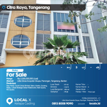 Siap Pakai, Cocok Untuk Bimbel, Salon, Kantor, Gudang, Resto, Lokasi Strategis Dekat Waterworld, Mall Ciputra, RS Ciputra For Sale - Jual Ruko Little Ginza Ecopolis Cikupa, Panongan, Tangerang, Banten Harga. Rp 200000xxxxJual) Deskripsi Properti. Siap Pakai, Cocok Untuk Bimbel, Salon, Kantor, Gudang, Resto, Lokasi Strategis Dekat Waterworld, Mall Ciputra, RS Ciputra Luas Tanah. 67 m2 Dimensi. 4.5x15 Luas Bangunan. 202 m2 Sertipikat. PPJB Kamar Tidur. - Kamar Mandi. 3 Garasi Mobil. - Hadap / View. Timur Laut LOCAL X Kelapa Gading ******** ⓪⑧①③⑧⓪⓪⑧⑨⓪⑨⓪ P3PIK-0000xxxx-CI-J