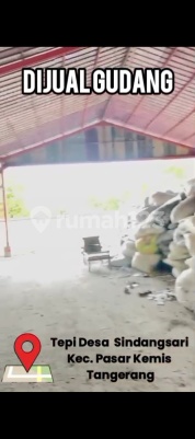 Dijual gudang lokasi tepi desa Sindangsari kec. pasar Kemis - Tangerang Lt. 1.700 m Lb 700 m SHM Harga 5,5 M Akses fuso Akses tol Cikupa ± 7 km