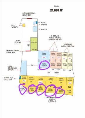 Disewakan Gudang ijin industri Di kawasan Harvest Pasar Kemis tangerang LT 21,691m LB 2226m celling 7m LB 650m celling 7m LB 2150m celling 9m LB 1516m celling 9m LB 1587m celling 9m LB 2130m celling 9m Listrik 3000 KVA Akses kontener 40 feet Harga sewa 40rb/m/bln exc ppn (A11)
