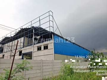 Disewakan gudang di pasar kamis tangerang Luas bangunan.4.291m2 Luas tanah 5479 m2 Hgb Pln 4400w 2meteran Akses container 40" Harga sewa 2.2M.nego O.tn1125