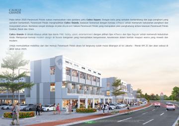 Rukonya ready di thn ini Free ppn Anchor tenant sudah buka AW, kampung kecil, dan akan ada cuci mobil carwash park (pisa grande) Berada di kawasan boulevard petals Kawasan grande pertama di petals Ruko Calico Grande 2 Lantai FREE PPN - 1,59M | Siap Tahun Ini | Kawasan Boulevard Petals dengan Anchor Tenant Ramai! FREE PPN! Ruko Calico Grande 1,59M - 2 Lantai Siap Tahun Ini di Boulevard Petals Miliki ruko komersial strategis di kawasan paling berkembang Paramount Petals! Calico Grande merupakan kawasan grande pertama di Petals yang berlokasi tepat di boulevard utama dengan potensi traffic tinggi dan visibilitas maksimal. Detail unit: - Ukuran 4 x 12 - Luas Bangunan 96 m² - 2 Lantai - Harga 1,59 M - FREE PPN - Serah terima tahun ini