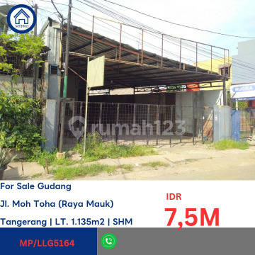 Jual murah via lelang. Gudang bagus di Jl. Raya Mauk (Moh. Toha), Periuk, Tangerang, Banten. Lelang tanggal 16 Desember 2025. Harga sudah termasuk pengosongan. Harga sudah turun dari sebelumnya 7,5M LLG5164