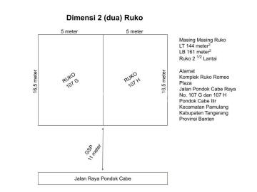 DISEWAKAN 2 Ruko Gandeng Komplek Ruko Romeo Plaza Jalan Raya Pondok Cabe Seberang lapangan terbang Tangsel SHM 2 1/2 lantai Luas masing masing Ruko: LT 144m LB 161m Lebar 5m Harga sewa (*masing masing Ruko*) : Rp.105jt/th Js