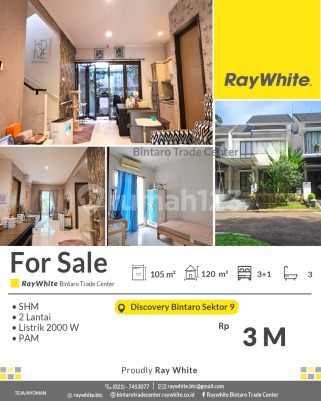 Cluster One Gate - Rumah Modern Siap Huni di Bintaro Sektor 9 Keamanan 24 jam Spesifikasi Luas tanah 105 m2 Luas bangunan 120 m2 Kamar tidur 3+1 Kamar mandi 3 2 lantai Listrik 2200 Va PAM SHM Lokasi strategis dekat dengan : - Pasar Modern : Pasar Modern Bintaro, Fresh Market Emerald Bintaro,Pasar Segar Graha raya - Pusat Perbelanjaan : Lotte Mart Mall, BXC Mall 1&2, Hari hari Swalayan, Transpark Mall, Bintaro Plaza, Living Plaza Bintaro, Electronic City. - Rumah Sakit : RS Pondok Indah Bintaro (dalam Lingkup kawasan discovery), RS Premier Bintaro, RS Mitra Keluarga. - Mudah Sarana Transportasi : Feeder Busway Bintaro, Stasiun Jurangmangu, Stasiun Sudimara, Stasiun Pd Ranji. - Sekolah Baik Taraf Nasional / Internasional : British International School, Global Jaya School, Sekolah BPK Penabur, STAN, UPJ, Sekolah Islam Aulia, dll. - Akses Toll Pd Aren, Akses Toll Kunciran - Serpong. - Akses jalan menuju Jakarta - BSD-Serpong - Ciputat. Harga Rp3 M nego *(tja/nyo)