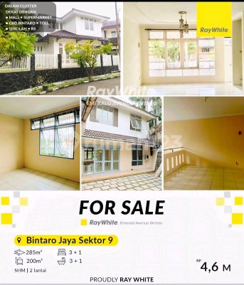 Rumah for Sale in JL. Flamingo, Bintaro Jaya sektor 9, Tangerang Selatan, Banten. Lingkungan bersih, Keamanan terjamin 24 jam, akses jalan utama, bebas banjir, lokasi strategis dekat dengan : lokasi strategis dekat dengan : - Pusat Perbelanjaan : BX Mall, Lotte Mart Mall, Hari hari Swalayan, Transpark Mall, Bintaro Plaza, Living Plaza Bintaro, Electronic City. - Rumah Sakit : RS Pondok Indah Bintaro (dalam Lingkup kawasan discovery), RS Premier Bintaro, RS Mitra Keluarga. - Mudah Sarana Transportasi : Feeder Busway Bintaro, Stasiun Jurangmangu, Stasiun Sudimara, Stasiun Pd Ranji. - Sekolah Baik Taraf Nasional / Internasional : British International School, Global Jaya School, Sekolah BPK Penabur, STAN, UPJ, Sekolah Islam Aulia, dll. - Akses Toll Pd Aren, Akses Toll Kunciran - BSD info detail & survey Yunia ☎ 0813xxxxxxxx * ylt