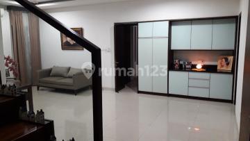 Dijual Cepat Town House Fully Furnished Taman Pesona Bintaro (SD) - Exclusive Listing LT: 142 LB: 168 m2 SHM 3KT lengkap dengan built in wardrobe, 3 KM (Merk HansGrohe + Kohler) 1 KT Pembantu dengan Bunk Bed + 1 KM Pembantu 2 Gudang + 2 Stair Case Storage 1 Dapur (Grease Trap, Top Stove dan Exhaust) New Wall Oven Modena (Gas), Aqua Dispenser, Lemari Es 2 Water Heater, 1 Semi Pantry. 1 Ruang Makan, 1 Ruang Keluarga 6 AC, 4 Ceiling Fan, 1 Ruang Cuci Atas Carport 2 Mobil One Gate System Code: SD