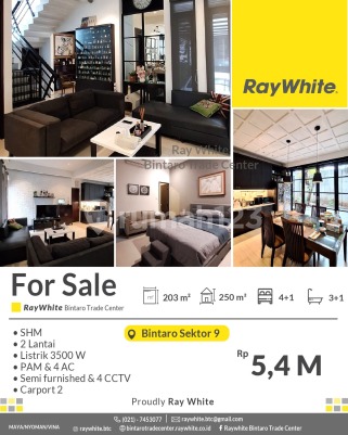FOR SALE! Rumah Luas Siap Huni di Bintaro Sektor 9 - Harga Nego! Spesifikasi Luas tanah 203 m2 Luas bangunan 250 m2 KT 4+1 KM 3+1 semi furnished carport 2-3 mobil cctv 4 SHM Harga : Rp5.4 M (nego) Lokasi strategis dekat dengan : - Pasar Modern : Pasar Modern Bintaro, Fresh Market Emerald Bintaro,Pasar Segar Graha raya - Pusat Perbelanjaan : Lotte Mart Mall, BXC Mall 1&2, Hari hari Swalayan, Transpark Mall, Bintaro Plaza, Living Plaza Bintaro, Electronic City. - Rumah Sakit : RS Pondok Indah Bintaro (dalam Lingkup kawasan discovery), RS Premier Bintaro, RS Mitra Keluarga. - Mudah Sarana Transportasi : Feeder Busway Bintaro, Stasiun Jurangmangu, Stasiun Sudimara, Stasiun Pd Ranji. - Sekolah Baik Taraf Nasional / Internasional : British International School, Global Jaya School, Sekolah BPK Penabur, STAN, UPJ, Sekolah Islam Aulia, dll. - Akses Toll Pd Aren, Akses Toll Kunciran - Serpong. - Akses jalan menuju Jakarta - BSD-Serpong - Ciputat. *(mya/nyo/vna)
