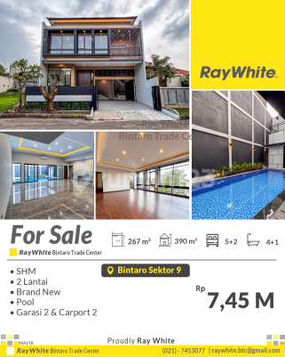 Info detail dan survey, hub WA Bambang Spesifikasi *Luas tanah 267 m2 *Luas bangunan 390 m2 *Kamar tidur 5+2 *Kamar mandi 4+1 *2 Lantai *Pool *Balkon *Sertifikat : SHM Harga: 7,45 M (nego) *(Mai.ir)