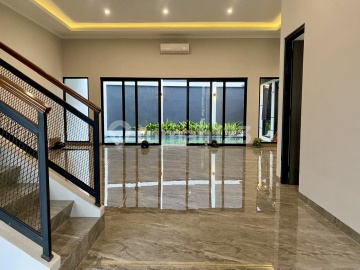 DIJUAL EXCLUSIVE TROPICAL HOUSE LT/LB : 267/390 Keunggulan : * jalan depan bisa 4 mobil * High ceiling 4 meter * KT 5 + 2 * KM 4 + 1 * Double Master Bedroom (Lt 2 dan Lt 1) * Private swimming pool 4x8 meter * Lantai parquette untuk kamar utama * Lantai HT 1x1 meter * Sertifikat SHM on hand * Garasi 2 mobil, carport 2 mobil Price : 7,45 M (nego) Very good price :thumbs_up: