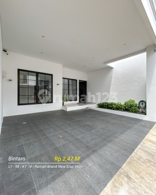 Rumah BINTARO Bangunan BRAND NEW + FURNISHED Lokasi strategis Dekat Gerbang Toll Parigi *Furnished dan Fasilitas* CCTV, Smart door lock, Saklar Wifi, 2 AC Sharp 1PK, Kitchen set almunium, Kompor tanam dan cooker hood, hidden socket, Lampu Philips Led, Toren dan Pompa pendorong, Stop kontak child protection, Electrical Schneider, Sanitari Paloma, Full Granit, Cat Dulux. Layout Open space dan siling tinggi, Taman belakang dan depan. *Kamar Tidur* Semua ada kamar mandi dalam, Kamar master di lantai 1 dan 2, Kamar luas, ada Balkon. Spesifikasi - Sertifikat: Hak Milik (SHM) - Luas Tanah : 98 m² - Luas Bangunan : ±140 m² - Kamar Tidur : 4 - Kamar Mndi : 4 - Carport : 2 Mobil - Lantai : 2 Lantai - Listrik : 3.500 Watt - Air : PAM JAYA Harga : Rp. 2,475 M nego Informasi lengkap dan survey bisa langsung DM atau WA DYAH 0856xxxxxxxx Edwin Bright Property