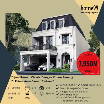 Rumah bergaya american classic di Bintaro. Temukan rumah 2 lantai yang modern ini, dijual dengan pemandangan permukiman warga yang menambah nilai estetika di lingkungan hunian. Rumah ini berada di area yang mudah dijangkau serta menawarkan lingkungan fasilitas yang lengkap, cocok untuk Anda yang menginginkan hunian strategis. Spesifikasi Utama Properti: - Kamar Tidur: 5 - Kamar Mandi: 4 - Sertifikat: SHM - Sertifikat Hak Milik - Daya Listrik: 5.500 W - Carport : 4 Mobil + 8 Motor - Kondisi Perabotan: Unfurnished Dilengkapi dengan: - Wastafel. - Kitchen Set. - Keamanan 24 jam. - Kolam Renang. - Taman. - Tempat Jemuran. Fitur unggulan: - Siap Huni. - Bebas Banjir. Terletak di Bintaro, rumah ini memberikan kemudahan akses ke berbagai fasilitas menarik. Dengan harga Rp. 7.950.000.xxx, anda bisa memiliki hunian terbaik yang sudah siap huni dan bersertifikat SHM - Sertifikat Hak Milik. Jangan lewatkan kesempatan untuk menikmati pengalaman tinggal di kawasan Bintaro yang nyaman ini! Hubungi segera untuk informasi lebih lanjut!
